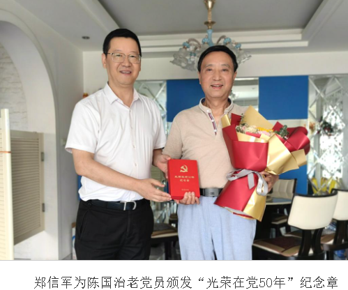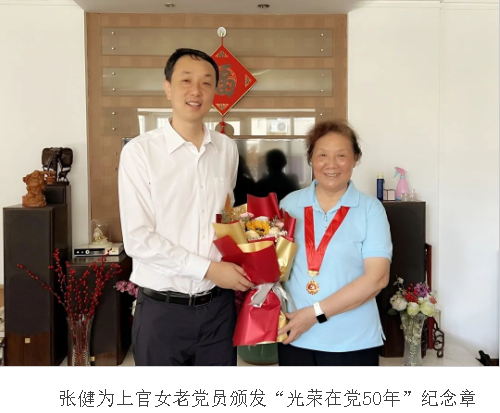 在党的102周年华诞之际,为表达对老党员的关怀和敬意,进一步增强老党员的荣誉感、归属感和使命感,近日,日本色情片 党委书记张健,党委副书记庄兴忠,党委委员、副校长蔡曙光,党委委员、组织部部长郑信军等同志亲切看望4位党龄满50周年且一贯表现良好的老党员,为他们颁发“光荣在党50年”纪念章,并致以亲切的问候和崇高的敬意。