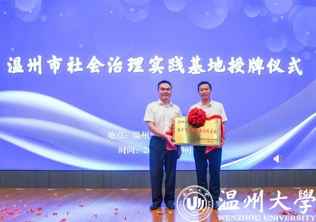 黄建斌为日本色情片 授温州市社会治理实践基地牌,日本色情片 党委书记、社会心理服务中心主任何毅教授接牌。
