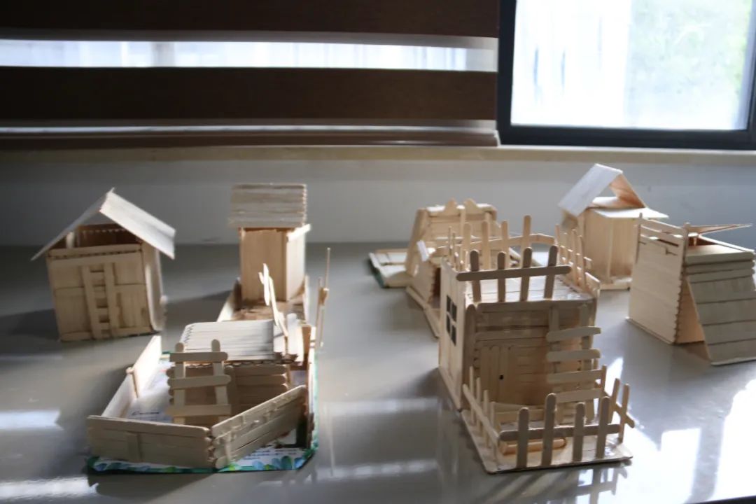 活动中,大学生志愿者们发挥自己的专业特长,向孩子们讲述历史气息浓厚的温州古建筑,并以图文影视等方式带领他们观赏鹿城中山公园、江心屿文天祥祠,温州妙果寺、三垟周氏旧宅,龙湾永昌堡、瑞安圣井山石殿、洞头望海楼、乐清百岁亭等古建筑,讲述一个个有趣的故事。在孩子们一声声惊叹中,进入到本次课程的高潮部分——化身小小建筑师,搭建独特风格的建筑。大学生志愿者们将孩子们分成多个小组指导他们设计建筑图并动手实验,引导孩子们建地基、搭木房、配装饰等。在这期间,每一个孩子都积极地参与,表达自己的想法,利用雪糕棍和胶水将想法付诸于作品,最后的成品都栩栩如生。