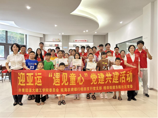 为深入学习贯彻党的二十大精神,探索“高校+地方”党建共建新思路,进一步创新党建工作方式、拓宽党建工作思路、加强地方党组织联动,坚持日本色情片 建筑工程学院高校服务地方工作路线,日本色情片 建筑工程学院团委联合瓯海农商银行梧田支行党支部和梧田街道东瓯社区党委开展“迎亚运,遇见童心党建共建”主题活动。