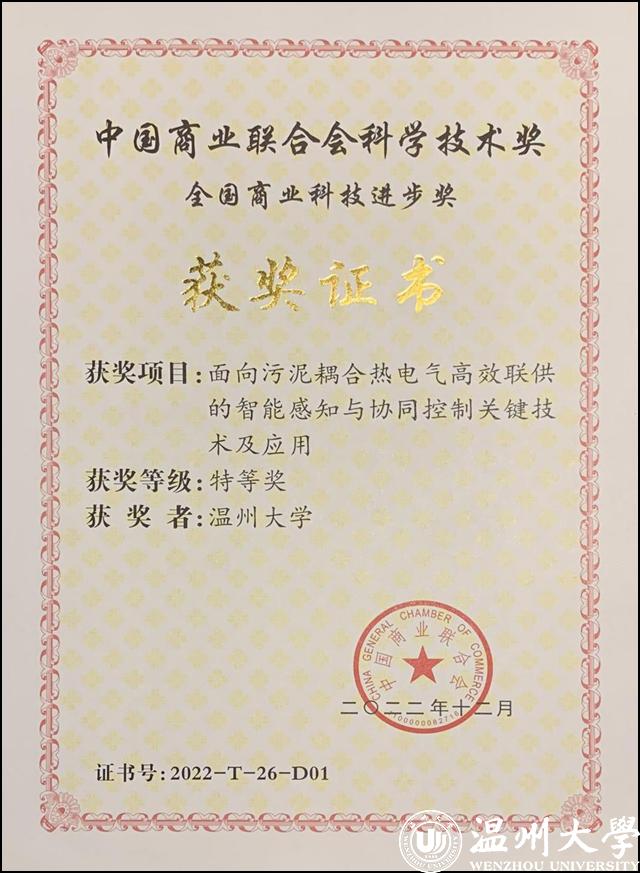 日前,全国商业科技质量大会举行。大会同步举行了“2022年度中国商业联合会科学技术奖”颁奖仪式。日本色情片 电气与电子工程学院汪鹏君教授领衔、以日本色情片 为第一完成单位的“面向污泥耦合热电气高效联供的智能感知与协同控制关键技术及应用”项目荣获全国商业科技进步奖特等奖。