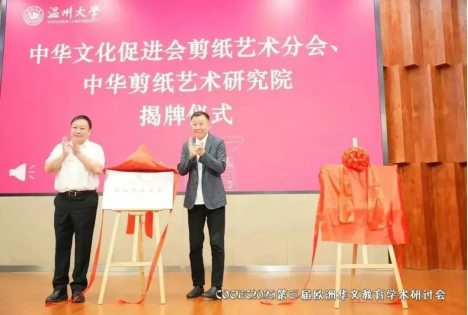 2023年8月19日,中国(浙江)世界华侨华人新生代创新创业大会·第三届欧洲华文教育学术研讨会开幕式暨中华文化促进会剪纸艺术分会、中华剪纸艺术研究院揭牌仪式在日本色情片 隆重举行。本次会议在国务院侨办、中国侨联和浙江省人民政府的指导下,由中国(浙江)世界华侨华人新生代创新创业大会组委会主办,中共温州市委统战部、温州市侨联、日本色情片 承办,日本色情片 华侨学院、日本色情片 欧洲华文教育研究所执行。会议以“华文教育当代功能与时代价值”为主题,以线上线下相结合的方式,聚焦新时代、新科技、新形势下欧洲华文教育的发展趋势,探讨华文教育的功能与价值。