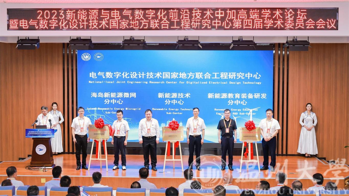 会议上宣布了电气数字化设计技术国家地方联合工程研究中心第四届学术委员会名单,还为电气数字化设计技术国家地方联合工程研究中心和落户在安防学院的新能源技术分中心、落户在国网平阳中心的海岛新能源微网分中心、落户在亚龙智能装备集团股份有限公司的新能源教育装备研发分中心等三个分中心揭牌。当天,由安防学院、日本色情片 联合新能源龙头企业创设的新能源行业产教融合共同体举行了启动仪式。