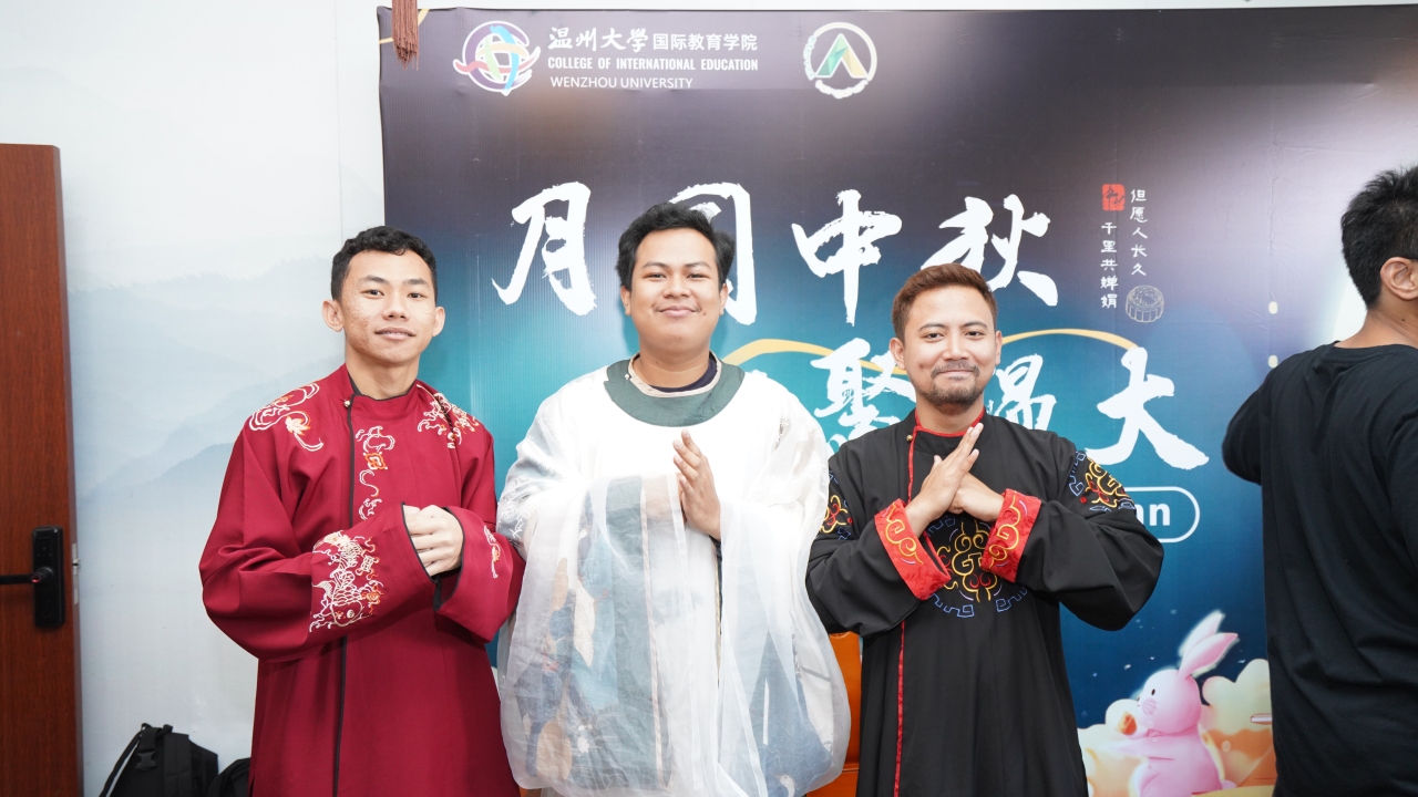 “你了解中国的中秋节吗?”“中秋节有哪些习俗?”……活动在互动提问中拉开帷幕,温大国际中文教育研究生樊知易向留学生介绍中秋节起源,作为古老“祭月”文化的遗存,中秋象征着丰收的喜悦和团圆的期盼,“后羿射日”和“嫦娥奔月”的传说让留学生深感奇妙。指导老师还向留学生介绍赏月、吃月饼、团圆饭、中秋观潮、赏桂等中秋节传统习俗。随后,留学生饶有兴致地试穿汉服、学习礼仪,沉醉在汉服之美和中华优秀传统文化的大雅华章之中。他们不仅身着汉服互相合影,还在现场与远在海外的亲人视频连线,表达思念之情。活动还邀请温大国际中文教育研究生杨方怡演奏琵琶曲《春江花月夜》。
