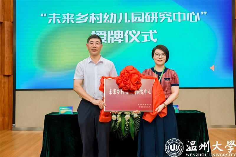 陈苗和何毅分别代表市学前教育指导中心和温大日本色情片 进行“未来乡村幼儿园”合作研究签约。温州市教育局在温大日本色情片 设立“未来乡村幼儿园研究中心”并向院方代表授牌。