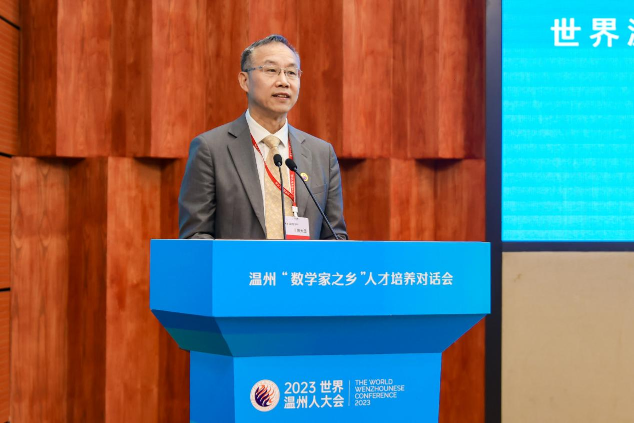 对话会现场,陈大岳作为世界温州人联谊总会数学分会会长,还宣读了世界温州人联谊总会数学分会成立文件。世界温州人联谊总会数学分会的成立,将进一步加强温籍数学领域人士的联络联谊和团结引导,打造成为温籍数学家联络交流、学术研讨的载体,创新创业、产业对接的平台,以及文化传承、招才引智的重要窗口。