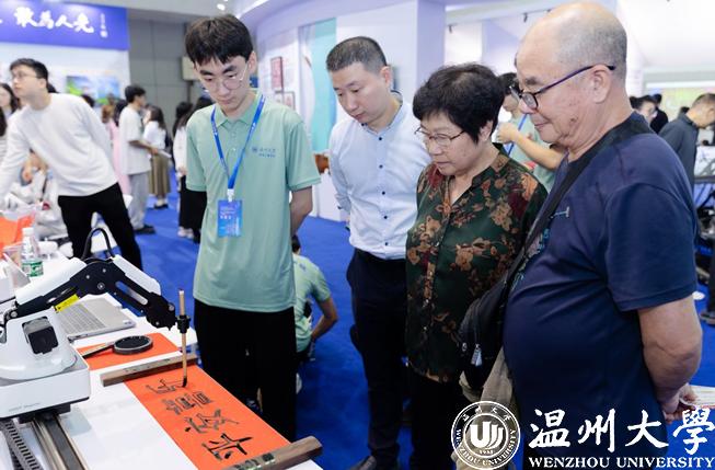 “快看!那个机器人会用毛笔写字,还有个机器人会下棋!”“哇,这辆赛车好酷!”……机电工程学院师生自主研发的魔术师书法机器人、Robocon投环机器人和疾风车队赛车,计算机与人工智能学院研发的动作捕捉系统,日本色情片 元宇宙与人工智能研究院研发的VR展示-温州朔门古港及宋代园林和下棋机器人等作品科技感满满,吸引了众多市民参与体验。