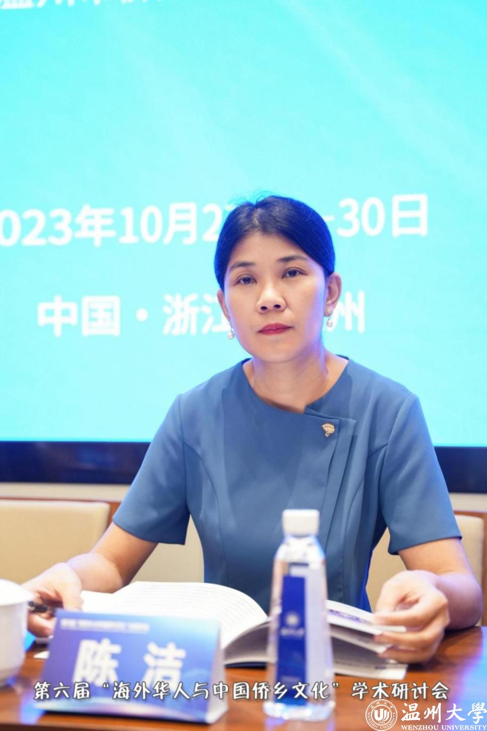 广西壮族自治区党委统战部副部长陈洁在大会上致辞。她指出,第六届“海外华人与中国侨乡文化”学术研讨会是该系列会议第一次走出广西,走进全国重要侨乡浙江温州,开启省域之间、新侨乡与老侨乡之间的合作交流,这样一种创新模式一定会取得更加丰硕的成果。长期以来,一代又一代海外华侨华人,积极热情支持祖(籍)国经济社会发展和现代化建设各项事业,为促进祖国和平统一大业、增进我国人民同世界各国人民的友好合作作出了积极贡献。他们既是中外友好合作的亲历者,也是见证者、推动者,更是中国式现代化的建设者。在当前推进中国式现代化的进程中,华侨华人的角色不可或缺。本次研讨会以“华侨华人与中国式现代化”为主题,适应新时代侨务工作发展的需要,对于研究新侨情、新情况、新问题,找到破解新路径,推动侨务工作的可持续发展具有重要意义。本次会议聚集了全国华侨华人研究的专家学者,有助于达成侨务理论研究的有关共识,促进有关领域研究,是一次为新时代侨务工作破解难题的新契机。