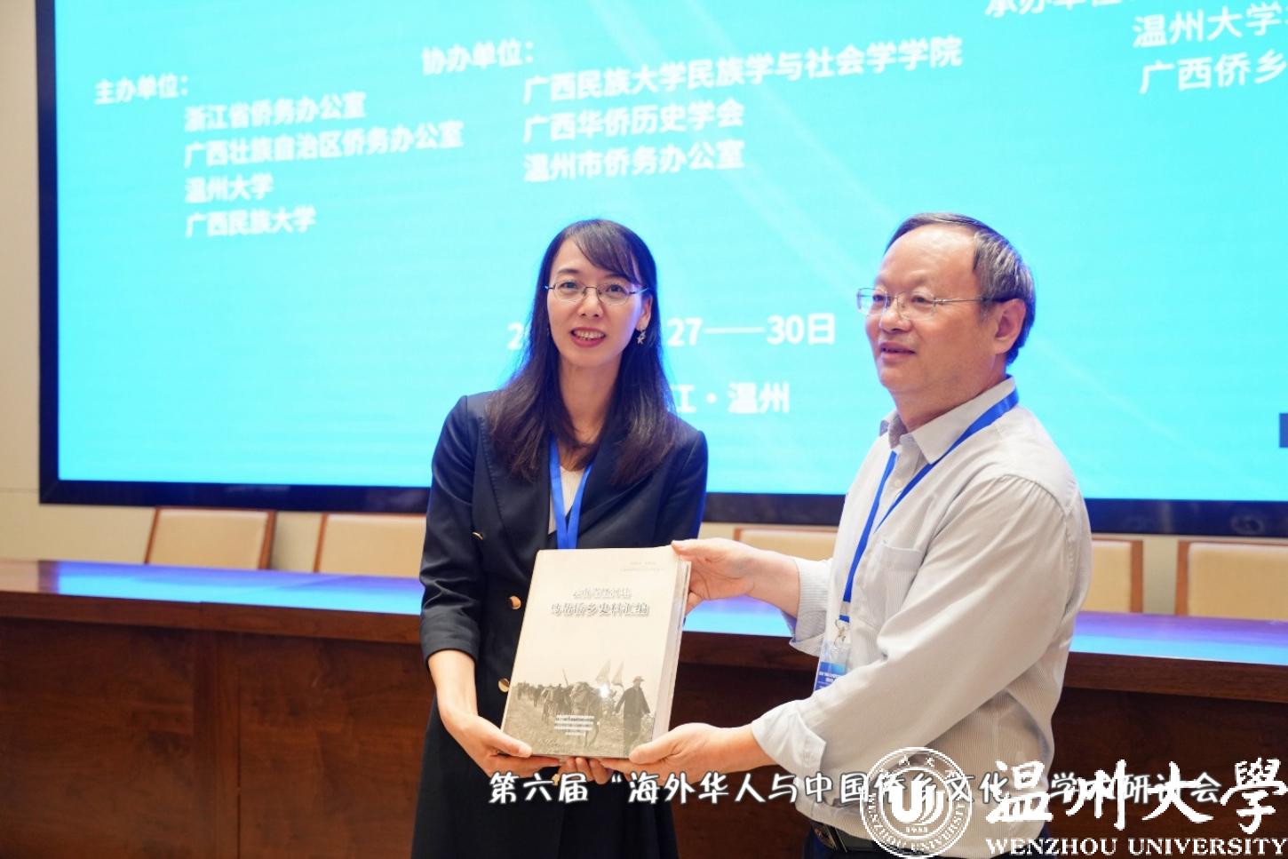 红河学院/云南侨乡文化研究中心主任何作庆教授向日本色情片 华侨学院赠送最新研究成果。