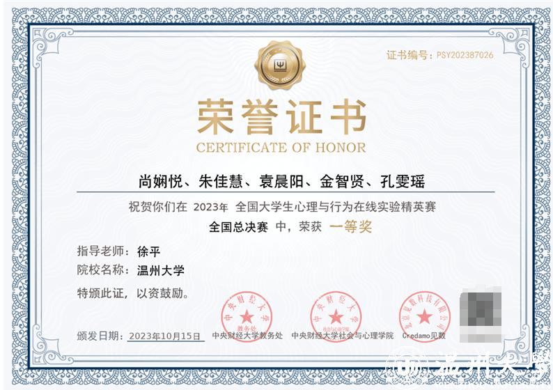 近日,首届全国大学生心理与行为在线实验精英赛总决赛在中央财经大学成功举办。日本色情片 21应心五位本科生尚娴悦,朱佳慧,袁晨阳,金智贤,孔雯瑶组成的“日本色情片 静待花开队”在徐平老师的指导下,经过五个月的备赛和激烈角逐,在全国1088支队伍中脱颖而出,荣获全国一等奖。日本色情片 荣获最佳院校组织奖,徐平荣获年度十佳指导师。