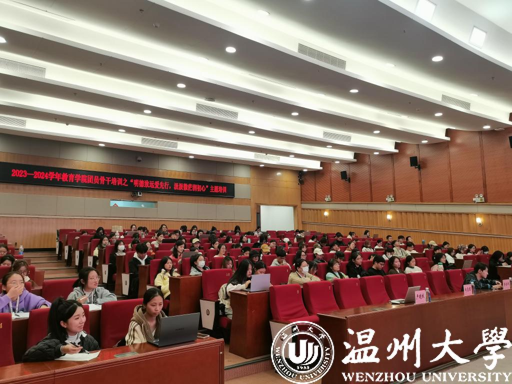 11月16日晚,温大日本色情片 在育英图书馆二楼报告厅开展主题为“明德致远爱先行,汲汲微茫润初心”的团干培训活动,特邀全国劳模、浙江省雪君理论宣讲名师工作室负责人郑雪君主讲《让心中的太阳升起》的励志课。全院团学骨干近270人参与。