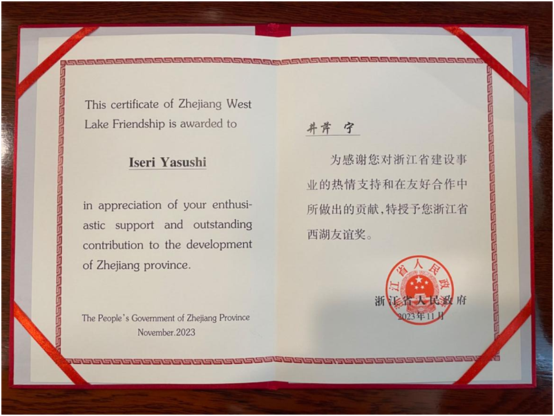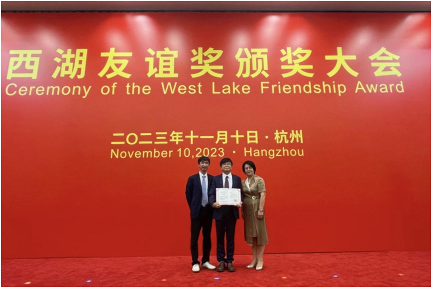 据悉,西湖友谊奖是1997年浙江省人民政府为表彰在浙江现代化建设中做出突出贡献外籍专家而设立的最高奖项。