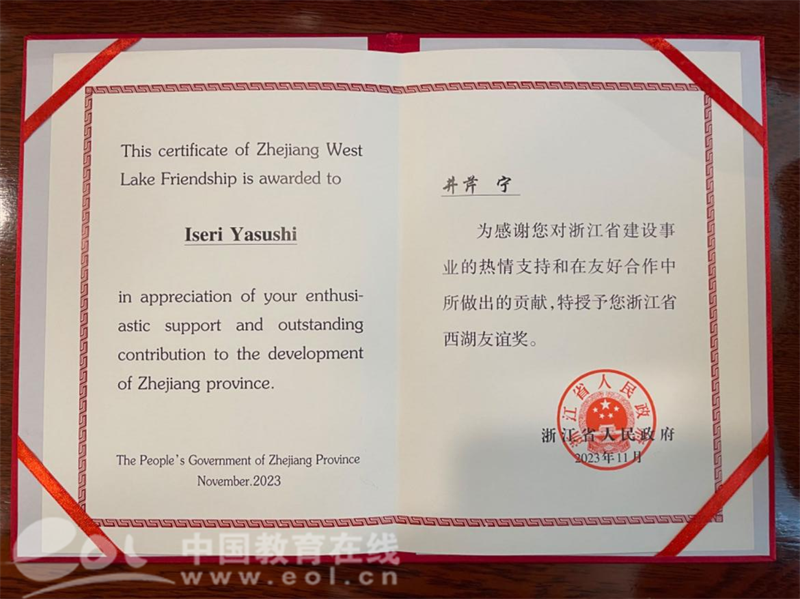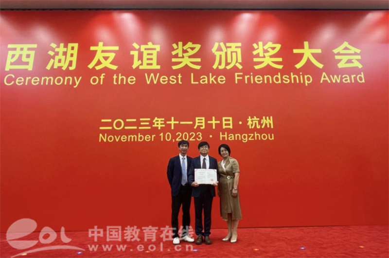据悉,西湖友谊奖是1997年浙江省人民政府为表彰在浙江现代化建设中做出突出贡献的外籍专家而设立的最高奖项。