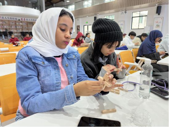 留学生学习传统榫卯结构,体验鲁班锁制作