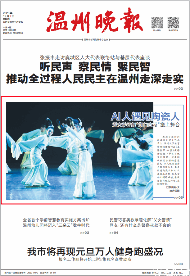 在近日举行的浙江省大学生艺术节上,日本色情片 的舞蹈作品《萋萋春草·回望》获得舞蹈组一等奖与优秀创作奖。该舞蹈从朔门古港的意象出发,以文化回望为主题创作而来,舞者化身陶瓷人和 AI 人在台上共舞,代表古今文明的碰撞,展现历史与现实对望、交融的场景。