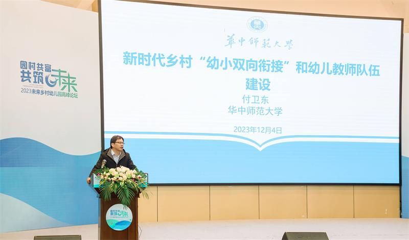 开幕式结束后,来自全国各地的四位知名专家作主旨演讲报告。华中师范大学国家教育治理研究院付卫东教授作《新时代乡村“幼小有效衔接”及学前教育教师队伍建设》专题报告。他指出双向背景下乡村幼小衔接应提升乡村幼儿园和乡村教师衔接教育的能力,加强优秀小学教学的专项整治,把培养教师的培训工作放在重要的位置。