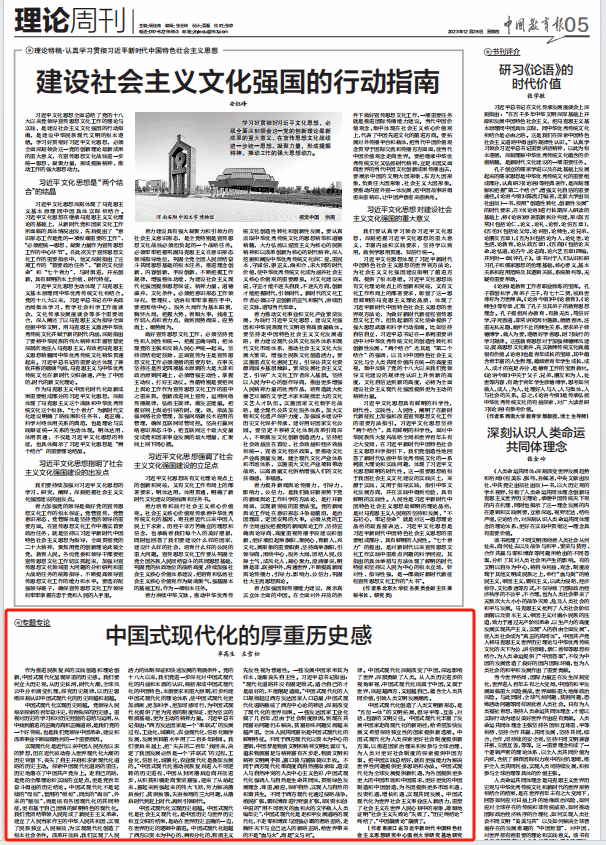 作为推进民族复兴的实践创造和理论创新,中国式现代化呈现厚重的历史感。我们要树立大历史观,从历史长河、时代大潮、全球风云中分析演变机理、探究历史规律,以历史思维深刻认识中国式现代化的历史跨越和超越。