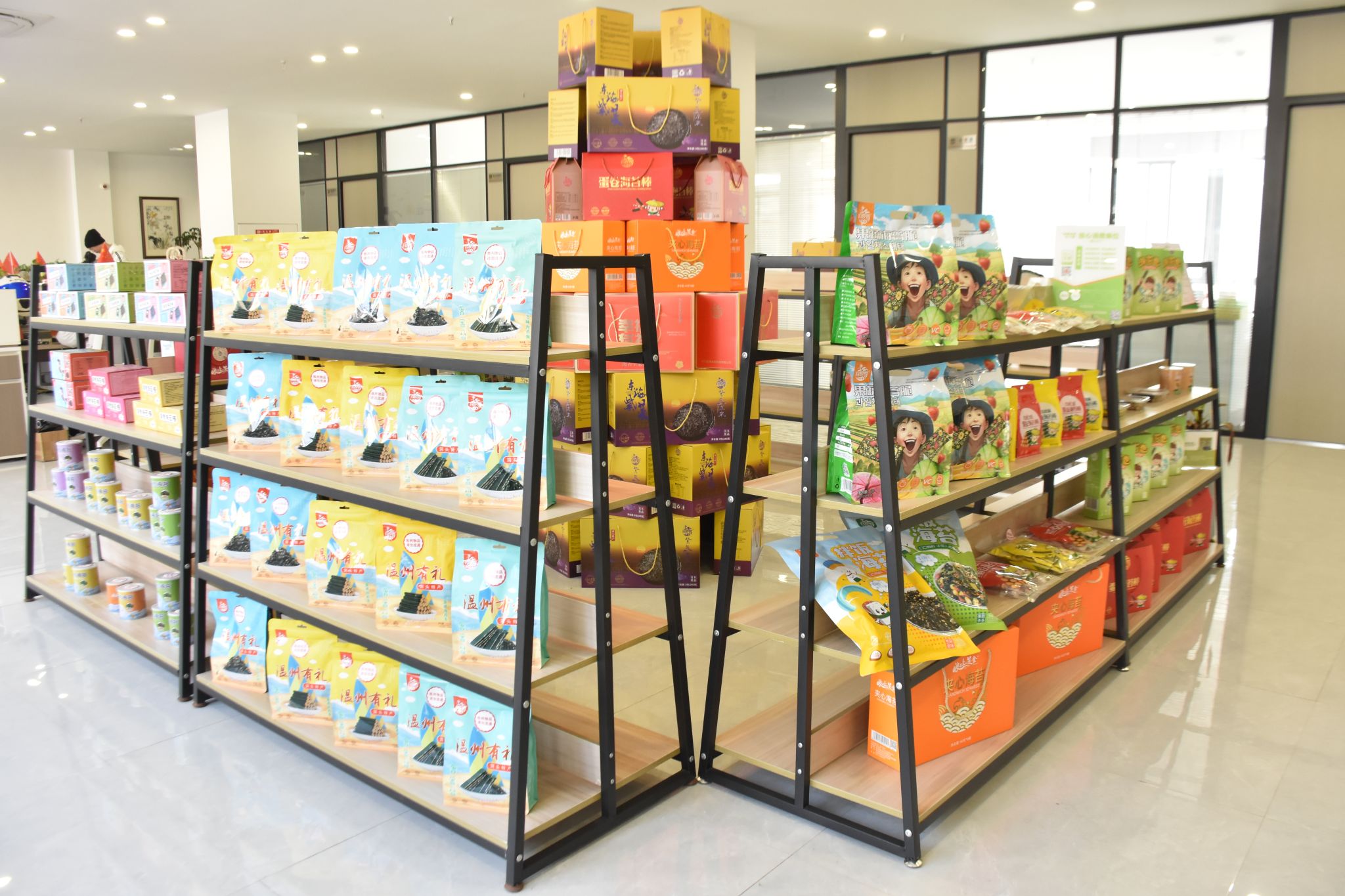 在宋达峰看来,产品形式单一问题是限制洞头“两菜”产业发展的最大瓶颈。于是就在去年,宋达峰牵头联合省食品学会专家、浙江工商大学教师帮扶指导温州星贝海藻食品有限公司,研发出了海苔锅巴、海苔虾片和羊栖菜果冻3款海藻新食品,并在去年6月份完成了生产线建设。