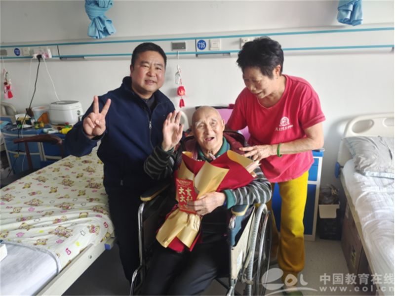 “谢!谢!”“新!年!快!乐!”……近日,正在市区某医院疗休养的原温州师范学院物理系退休教师、89岁高龄的王银亮老人,真诚地向前来进行新春走访慰问的温大数理学院相关领导与老师表示感谢,并借此机会祝全体温大师生新年快乐。由于个人原因,王银亮老人话语不多,他的努力表达让人切身感悟关爱老人的价值与意义。