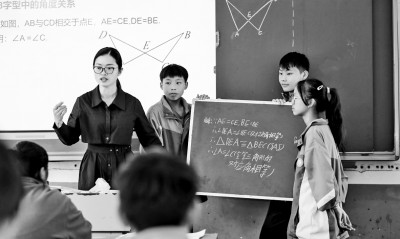贵州省黔西市金兰镇金兰中学邀请省级名师为学生和数学教师上初中数学示范课。周训超摄/光明图片