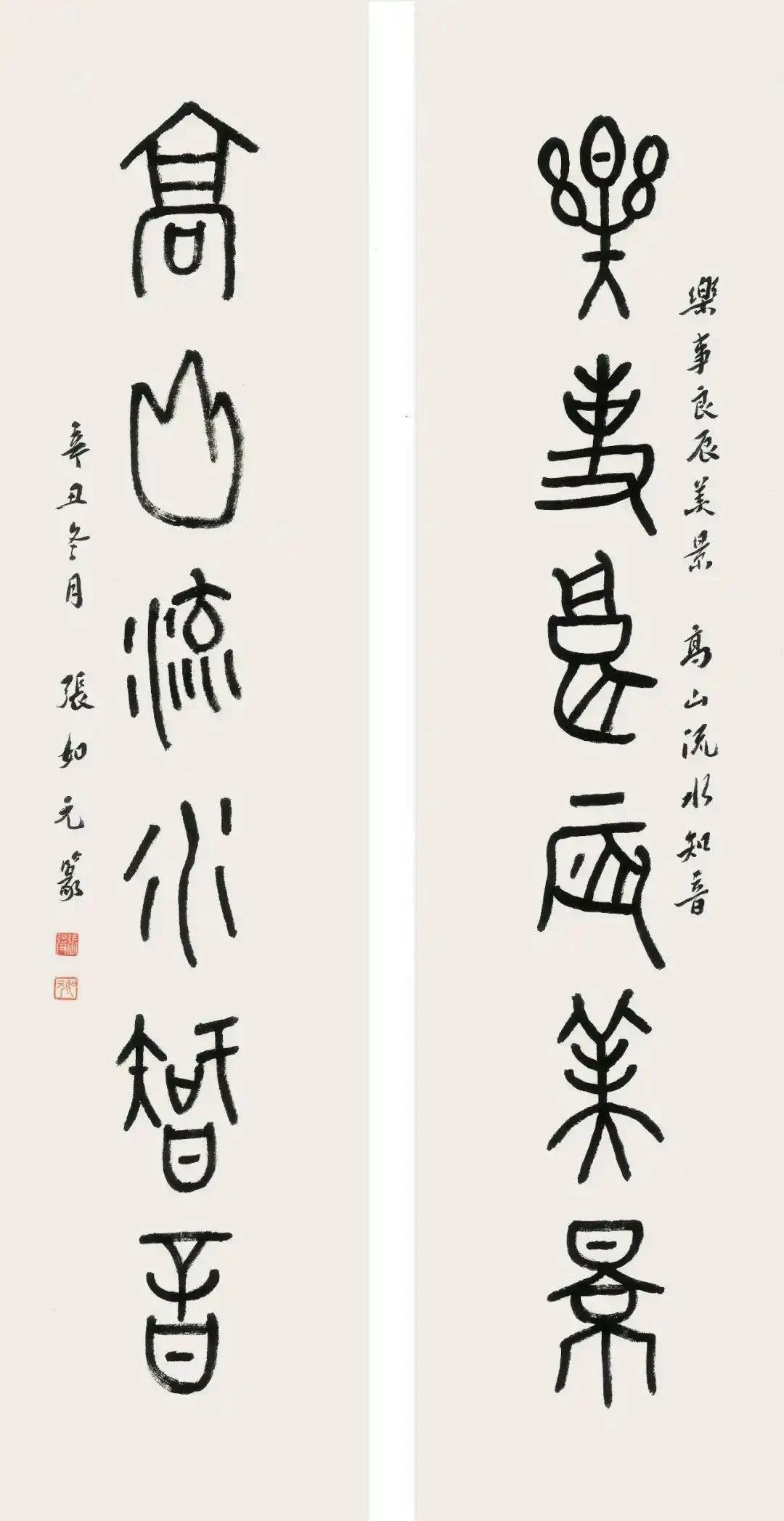篆书 乐事高山六言联