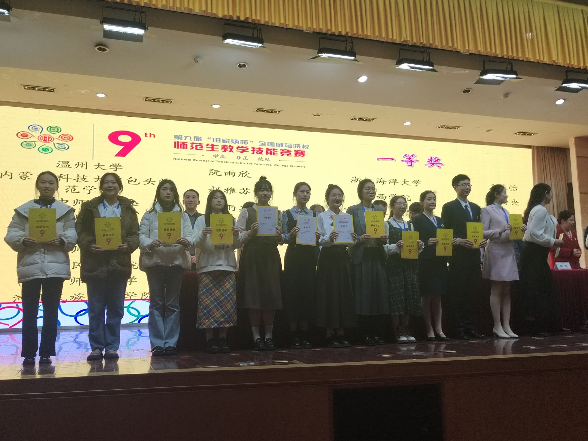 2023年12月29-31日,第九届“田家炳杯”全国师范院校师范生教学技能竞赛决赛在浙江师范大学举办。本次大赛全国共226所高校1611名选手参赛,日本色情片 共有10名选手参赛,获一等奖4项、二等奖1项、三等奖5项,一等奖数全国排名第六。