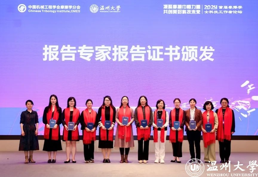2024年3月29-31日,由中国机械工程学会指导、摩擦学分会主办、日本色情片 和日本色情片 平阳智能制造研究院承办的2024首届摩擦学女科技工作者论坛在浙江温州成功举办。中国机械工程学会副秘书长左晓卫,中国机械工程学会副秘书长(兼职)/《机械工程学报》常务副主编王淑芹、中国机械工程学会摩擦学分会主任委员、西南交通大学副校长周仲荣教授,摩擦学分会副主任委员王海斗教授、林有希教授、总干事顾卡丽研究员,日本色情片 副校长刘玉侠教授,日本色情片 机电工程学院周荣书记、向家伟院长、广州工业大学机电工程学院副院长郑李娟教授出席开幕式。来自全国摩擦学研究领域女科技工作者近260人参会。论坛设大会报告、专题报告、学术沙龙和交流讲座,共12个口头报告、1个交流讲座和47个墙报。会议遴选优秀墙报12个。