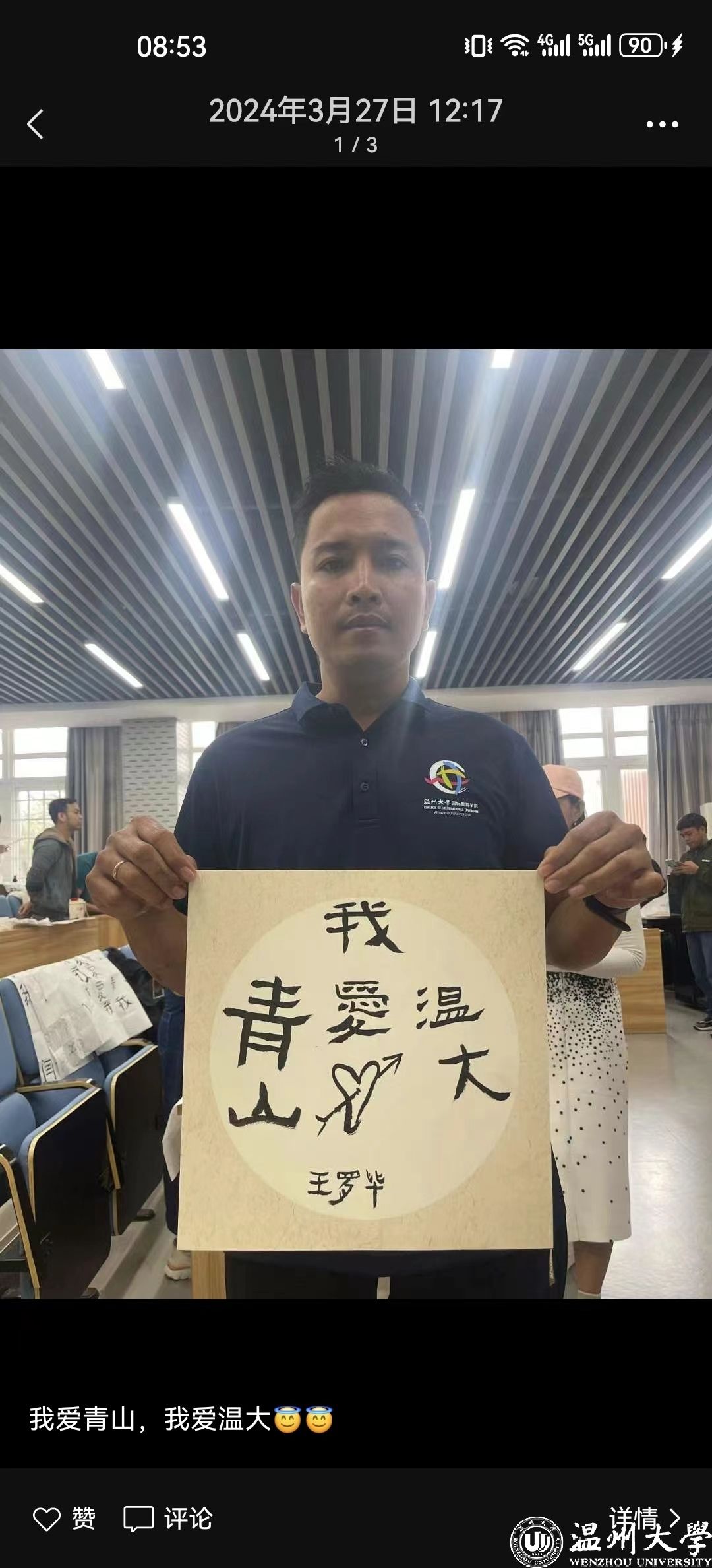 首届学员安德鲁在毕业典礼上的发言可见一斑。他分享道:“本次学习不仅提高了同学们的中文水平,也让我们感受到了中国传统文化的独特魅力,亲身感受到中国的壮丽河山与秀美风景。”在温州学习“满月”之际,王罗毕在微信朋友圈上传了手持绘画、书法作品的个人照片,配文是“我爱青山,我爱温大”,图文饱含感激之情。