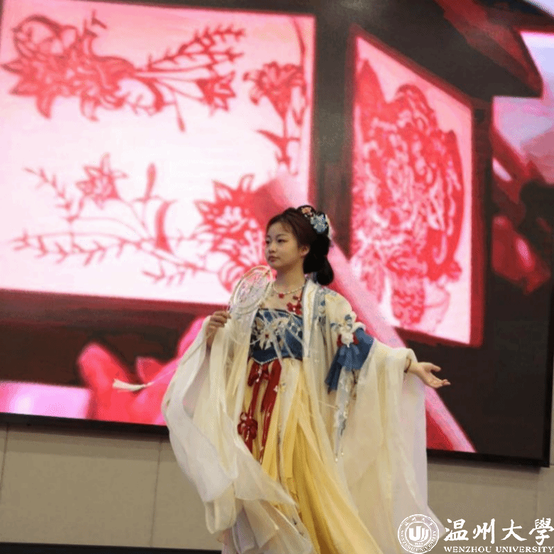 瓯玉汉服社成员为大会带来了精彩美妙的汉服走秀和古典舞,红楼戏曲社成员表演了悠扬婉转的越剧《追鱼·观灯》,流行音乐协会成员高歌一曲《经典咏流传》,让现场观众与传统文化邂逅了一场跨越时空的视觉盛宴,沉醉于国风和诗词的独特魅力中。