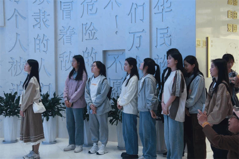 在欢乐而和谐的氛围中,参观活动逐渐接近了尾声。当一行人抵达国旗馆庄严的大门口时,每个人都充满热情地分享着自己的感悟,镜头捕捉下了这一神圣而庄重的时刻,将这份感动和收获永远定格在心头。