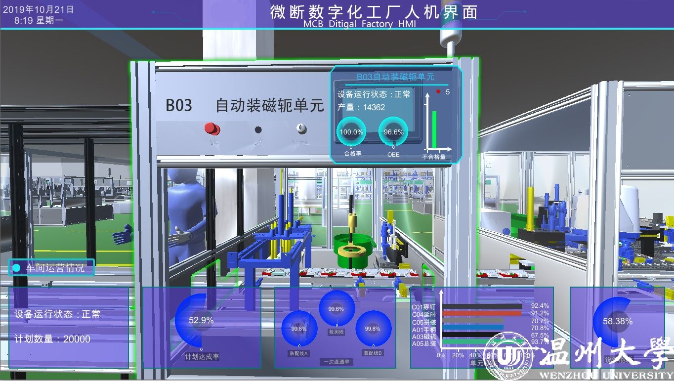 舒亮提到的“数字孪生”技术,是指针对物理世界中的物体,通过数字化手段来构建数字世界中一模一样的虚拟现实,以实现对物理实体的了解、分析和优化。天正公司方面点赞“温大智慧”:“数字化工厂让整个系统实现了自动化的装配、检测、包装和信息化管理,让我们拥有了无人化工厂和数字化工厂。”