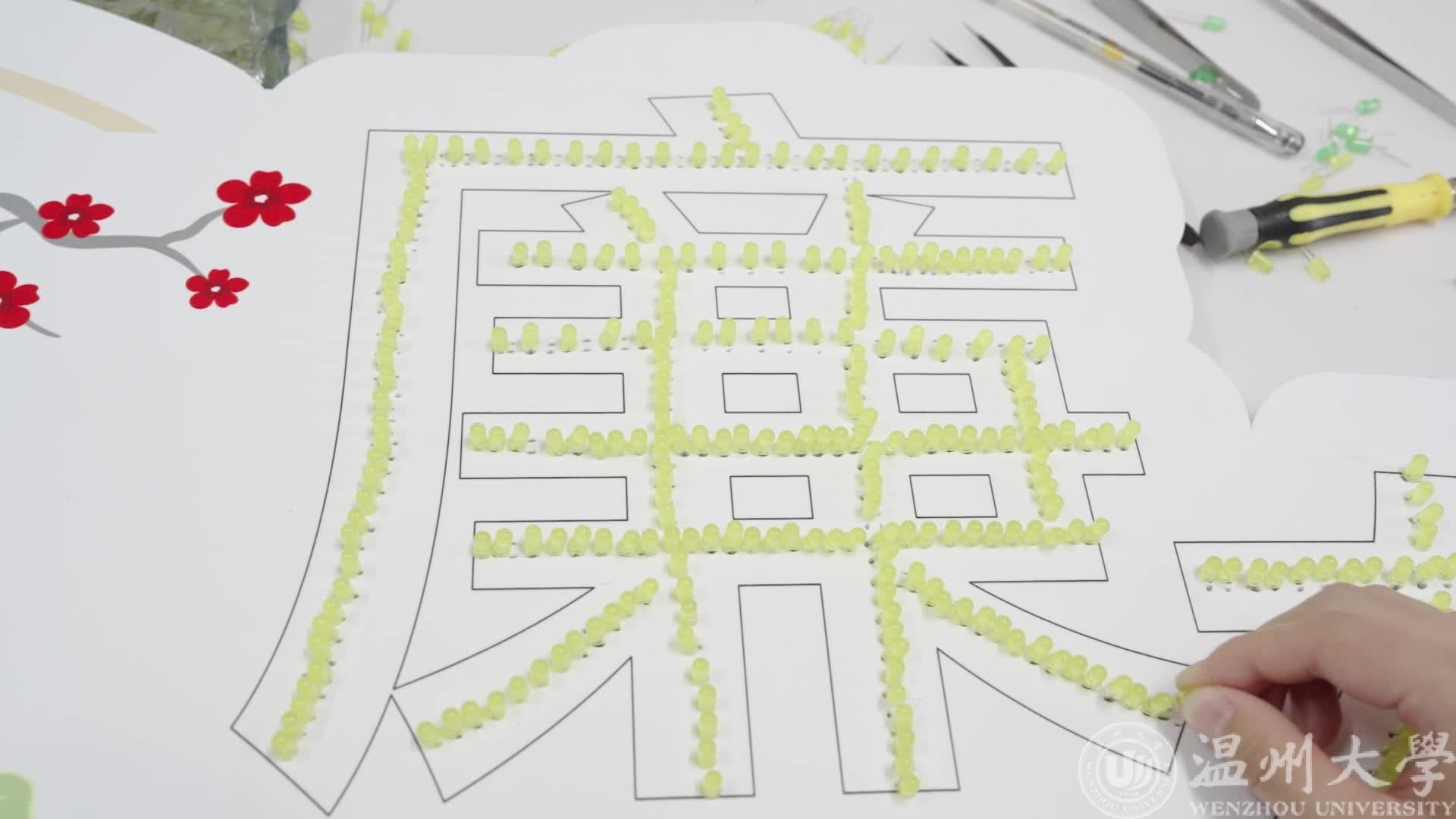 “在泡沫板上焊接近三百个发光二极管,这听起来似乎是件难以置信的事情,在焊接过程中,师生们遇到了许多技术难题,但大家充分发挥聪明才智完成了任务,”学院辅导员潘龙飞说。不仅如此,同学们还发挥创造力,在电路板上焊接出“出淤泥而不染,濯清涟而不妖”的莲花灯图案装饰灯板。