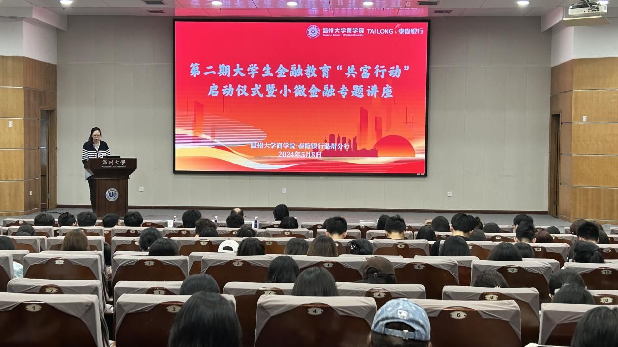 启动仪式上,银校双方为“共富行动”师生代表颁发聘书。泰隆银行温州分行工作人员为学生们作专题讲座“开启小微金融之门”,详细介绍了泰隆银行的雄厚实力、发展历程、发展方向、小微金融的特色以及泰隆银行“三品三表”“两有一无”以及“三三制”等助力小微金融发展的切实举措,帮助学生们加深对泰隆银行和小微金融的了解。