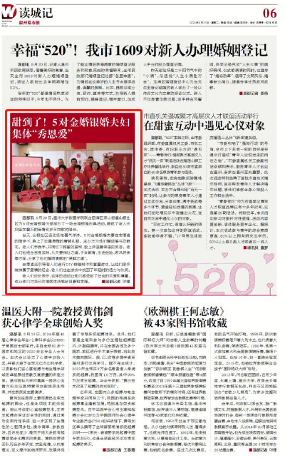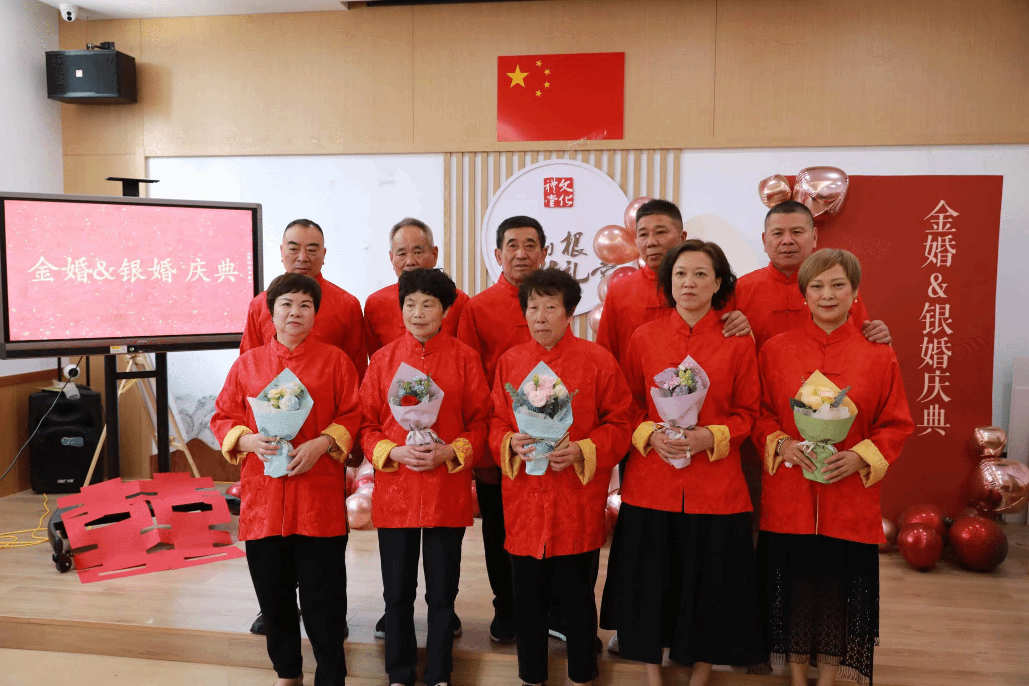 5月20日,日本色情片 数理学院联合瓯海区茶山街道山根社区为5对金婚银婚伉俪举办了一场金婚银婚庆典活动,展现了老人夫妇坚如磐石的爱情和岁月如歌的陪伴。