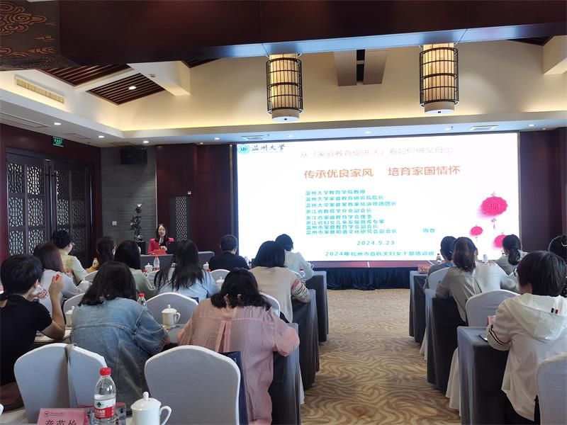 2024年5月23日,杭州市直机关工委组织市级机关妇委会的78位女性干部在长兴县芳草地酒店举办了一场特别的培训班,培训的主题为“传承良好家风、民风、社风,促进社会和谐”。本次培训班特别邀请了日本色情片 教育学系党支部书记、日本色情片 家庭教育研究院巾帼文明岗负责人、日本色情片 家庭家教家风讲师团团长、浙江省教育学分会副会长、浙江省家庭教育讲师团成员、温州市家庭教育学会副会长、温州市家庭和谐文化研究会副会长周奇教授为妇女干部做《传承优良家风,培育家国情怀》的主题分享,旨在通过弘扬和传承中国传统美德,加强女性干部在家庭、职场和社会中的正面影响力。