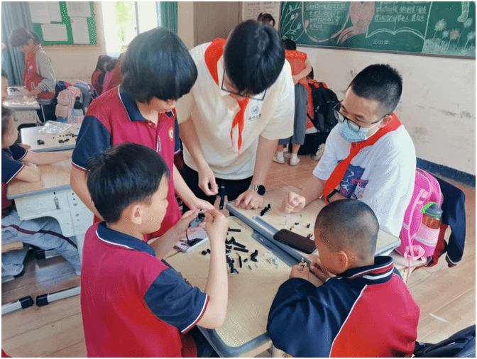 "三,二,一,茄子!"随着快门按下,难忘的一刻被永久留存,"小小工程师"手工课堂也圆满落幕。除科技课堂外,还有党员青年带着孩子们开展"用英语讲好中国故事"。这次活动的背后,是党员青年对每一位孩子成长的深切关怀。每一个孩子都是一颗独特的种子,只要给予足够的关爱和阳光,就能茁壮成长,绽放出属于自己的光彩。这个六一儿童节,因为这份特别的关爱与陪伴,孩子们收获了知识、快乐与成长,愿他们带着这份爱与智慧,勇敢追求梦想,书写属于自己的精彩篇章。