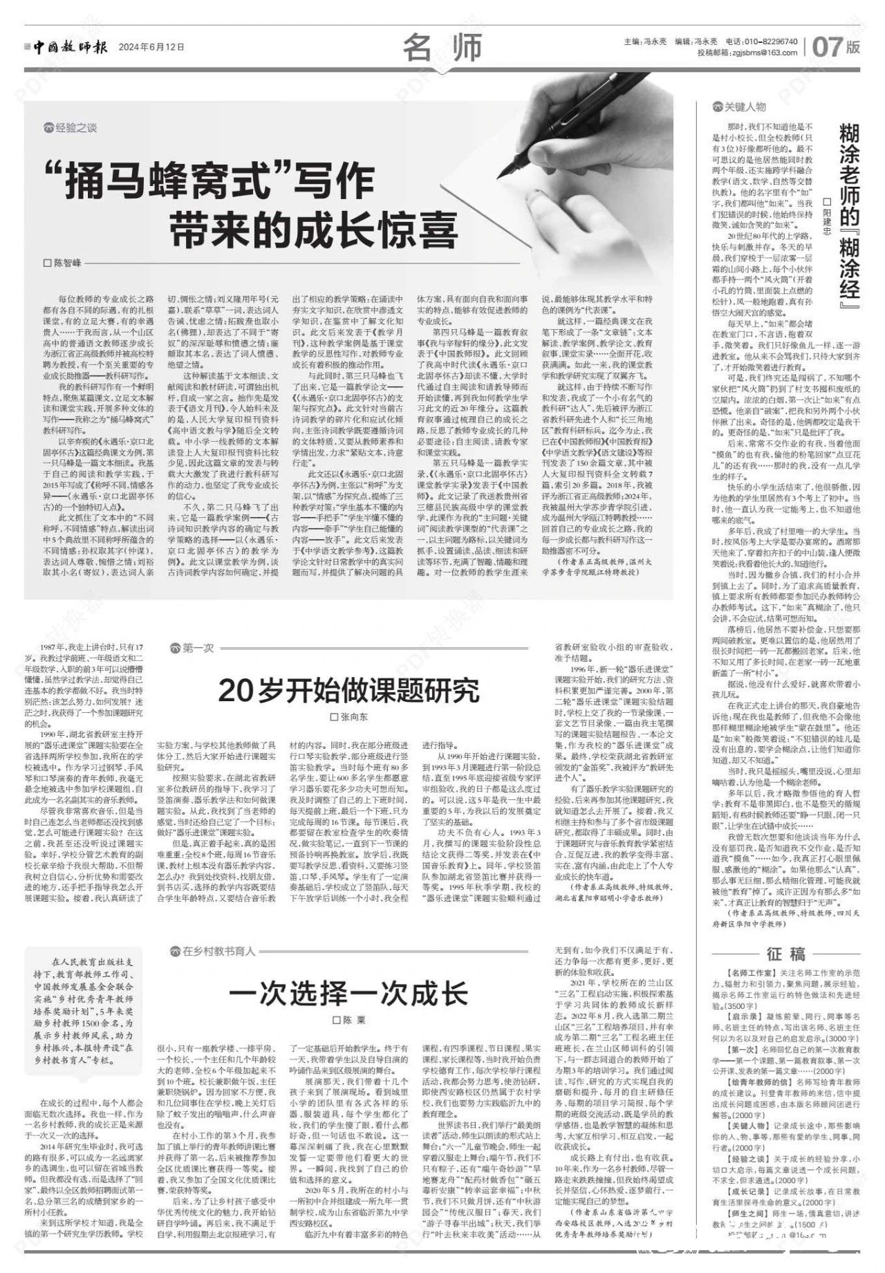 我的教科研写作有一个鲜明特点,聚焦某篇课文,立足文本解读和课堂实践,开展多种文体的写作——我称之为“捅马蜂窝式”教科研写作。