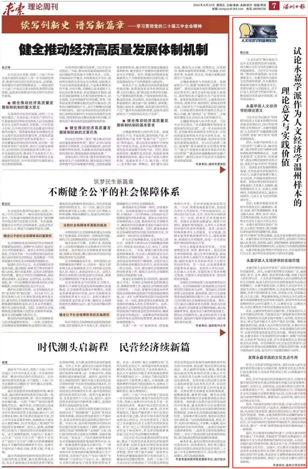 温州民建会员、温大法学院诉讼法系主任、温州市演讲与口才协会会长陈以拓理论研究文章《试论永嘉学派作为人文经济学温州样本的理论意义与实践价值》被温州日报采用刊登。