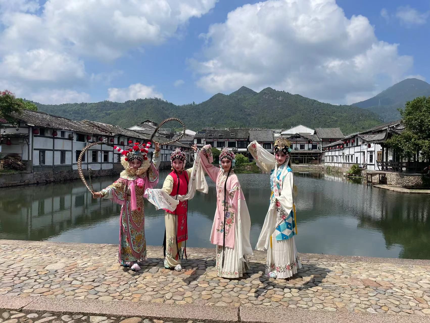 “良辰美景奈何天,赏心乐事谁家院……”永昆演员为大学生们带来了《牡丹亭》等经典剧目的演出。在苍坡古村,在绿柳溪水、青砖石板的映衬下,他们的戏曲装扮与村落格外和谐美好。“在上学期的中国传统课上,我就了解过京剧。不过这是我第一次在现实生活中听到戏曲,我觉得很有意思,也很喜欢,很想知道这些戏曲背后的故事。”俊丽告诉记者,在两天的旅游中,楠溪江给她的印象是俊俏而秀丽。也许在冥冥之中,这就是俊丽和楠溪江的缘分。