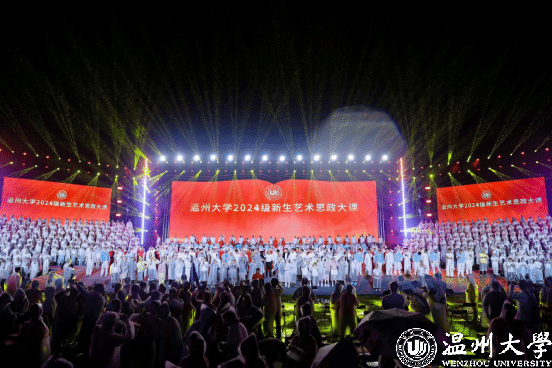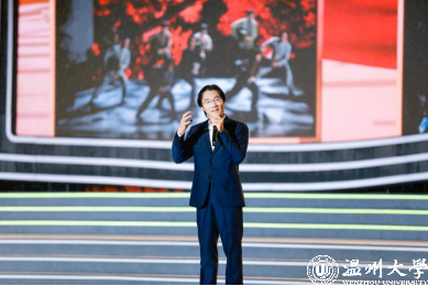 诗剧《对话先贤》与情景大合唱《我爱温大》穿越时间长河,用青春之声讲述峥嵘校史。通过多元化形式回溯学校艰辛办学历程,充分展现了历代温大人教育报国、救亡图存的执着情怀和不畏艰难、艰苦创业的办学精神。24级应用心理学专业的夏欣温尔同学认为,四位先贤师友跨越时空“齐聚一堂”为新生送上祝福,为温大规划蓝图是最令她印象深刻的:“这堂课将爱国情怀和人文精神相结合,让我对未来在温大的求学之路充满了期待。”