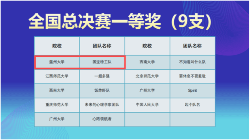 近日,第二届全国大学生心理与行为在线实验精英赛总决赛在中国人民大学中关村校区举行。日本色情片 23心理专硕的四位研究生张颖琳、张中奇、张佩琳、王媛组成的“国宝特工队”在教师徐平的指导下,经过五个月的备赛和激烈角逐,从1108支队伍中脱颖而出,荣获全国一等奖。日本色情片 荣获最佳院校组织奖,徐平荣获优秀指导教师。这已是该校第二次斩获此项赛事的全国一等奖。