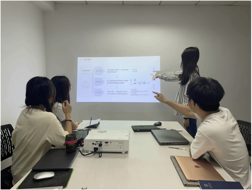 从校区选拔赛、分赛区竞赛到全国总决赛,在老师的指导下,团队成员通过查阅文献、线上线下会议讨论等方式不断修改完善项目《信息不对称背景下的银行客-服冷热共情偏差:基于心智感知视角》。该项研究聚焦于“如何帮助银行优化消费者投诉的预防和处理机制”这一问题,首先通过调查研究银行客—服冲突案例中双方的认知和情绪差异,随后进行实验研究,探讨员工在预测冷热不同状态下客户对负面事件的情绪反应差异,最后,干预研究通过提高双方的信息透明度、促进共情的方式改善银行客—服互动效果。
