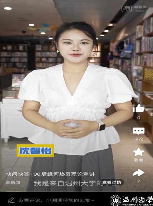作为日本色情片 的一员,沈馨怡积极参与学校的各项活动,从《温大青年》微党课的主讲人到日本色情片 学生会青说系列的主讲嘉宾,再到90周年校庆朗诵献礼的学生代表,她的每一次亮相都充满了力量与情感。今年3月,她与一个有温度的组织——“瓯越思享+”宣讲团邂逅,她推开了一扇全新的大门。面对宣讲这一陌生的领域,她没有丝毫的畏惧与退缩。相反,她以极大的热情和求知欲投入到学习中去。利用空余时间,她广泛查阅资料,深入了解各种理论知识和政策精神,力求做到准确、全面地掌握宣讲内容。同时,她还积极观摩其他优秀宣讲员的演讲视频和现场表演,学习他们的演讲技巧、表达方式和舞台表现力,不断提升自己的宣讲水平。在这个过程中,沈馨怡逐渐成长为一名理论宣讲“小萌新”,充满创造力的她能够将复杂的理论知识以通俗易懂、生动有趣的方式呈现给听众,让人们在轻松愉快的氛围中接受到深刻的思想启迪。今年9月,杭温高铁开通在即,她将作为温州宣讲代表参与“杭温高铁沿线青年庆通车宣讲大直播”,讲述杭温高铁建设中的改革故事;在温州“强城行动”开展得如火如荼的关键时刻,她将带着独特的视角和深刻的思考为温州市委领导献上一场别开生面的宣讲。
