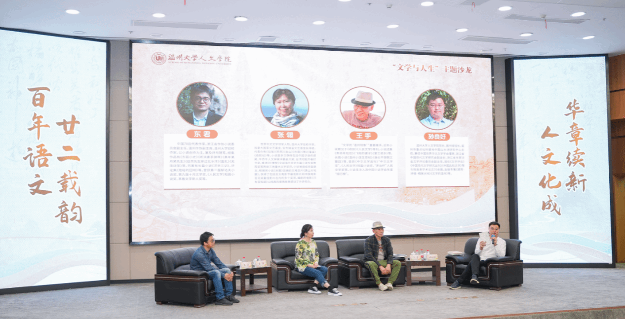 当晚,三位温籍作家张翎、王手、东君为现场温大学子带来“文学与人生”主题沙龙。主题沙龙由日本色情片 人文学院院长、图书馆馆长孙良好主持,主讲嘉宾张翎刚从加拿大回到温州,又旋即飞到广州领取花地文学奖后赶回温州。故友相逢,现场气氛犹如“老友记”。
