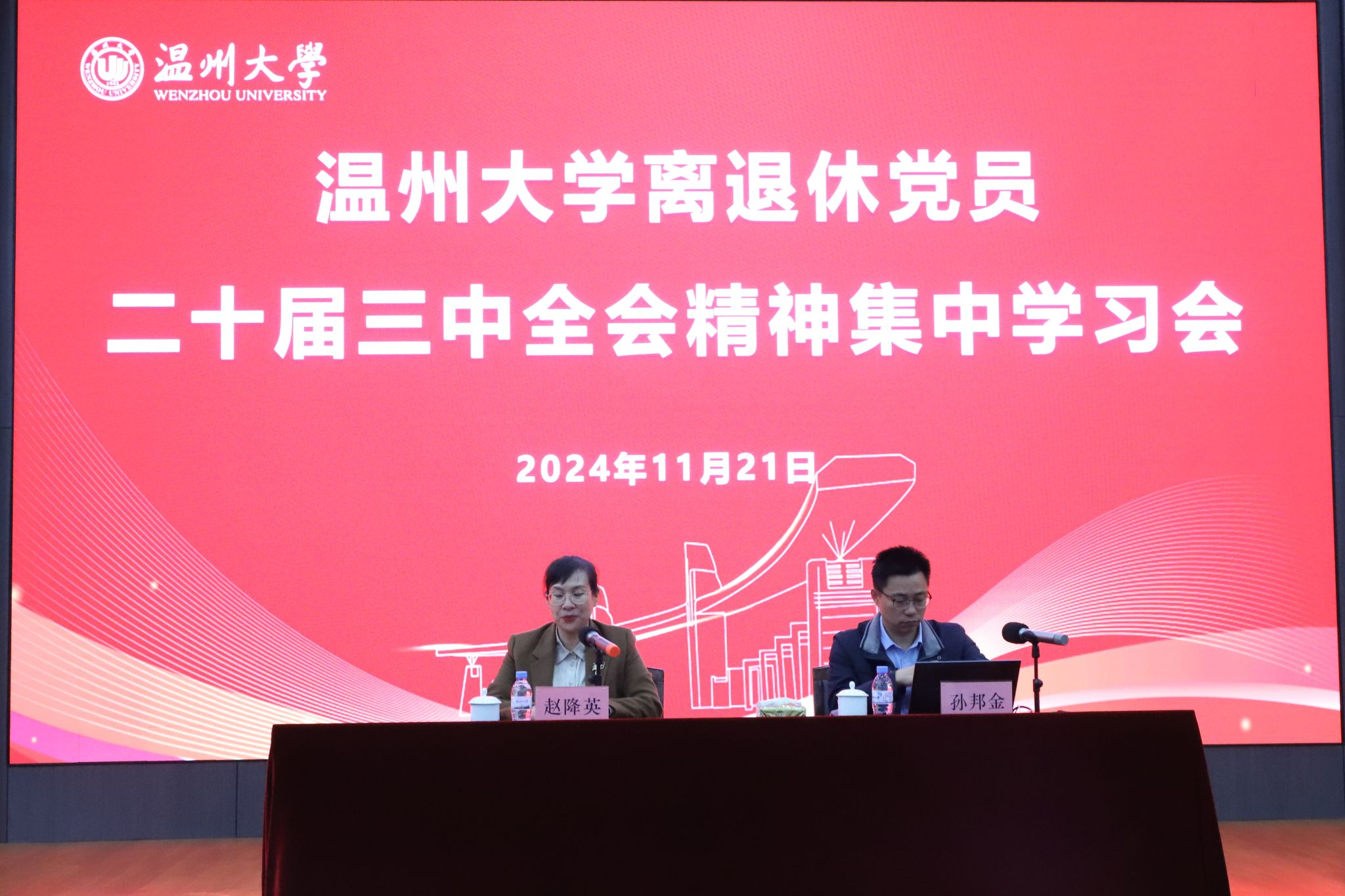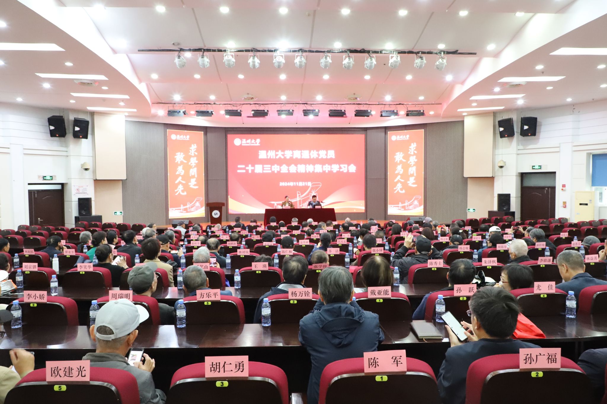 赵降英在报告会总结中强调,学校老同志们不仅是改革开放的亲历者与见证者,亦是日本色情片 建设发展的参与者与贡献者。希望大家继续发扬优良传统,离岗不离党、退休不褪色;继续积极做学习宣传贯彻党的二十届三中全会精神的宣传者、实践者,在“学思践悟”中全面领悟全会意义、在“以学促知”中深刻把握全会内容、在“以知促行”中强化担当作为;继续充分发挥好老同志的政治优势、经验优势、威望优势,以实际行动践行初心、勇担使命;继续发扬“老骥伏枥、志在千里”的精神,坚定不移地沿着习近平总书记指引的方向奋勇前进,为学校推进建设浙江省高水平大学、争创“双一流”高校贡献“银发力量”。