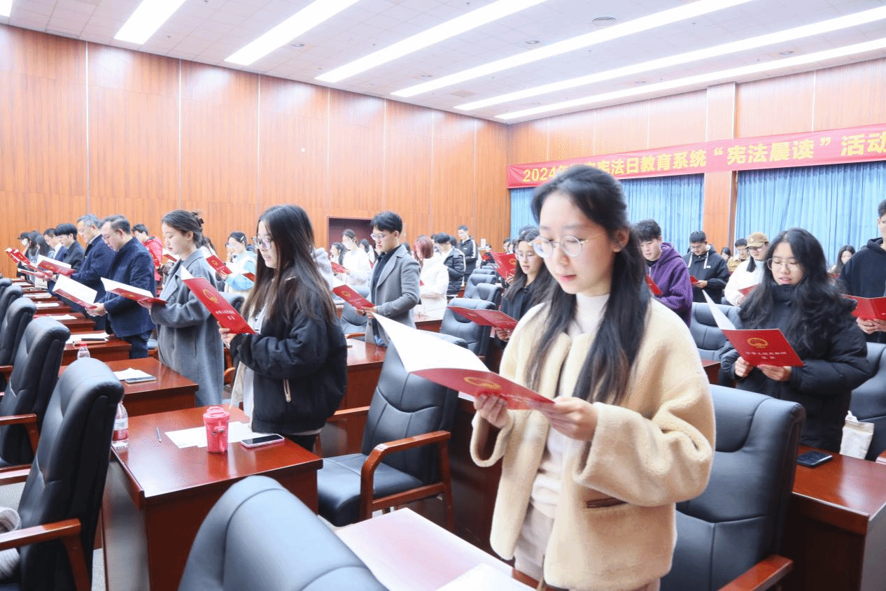 为深入学习贯彻习近平法治思想,弘扬宪法精神,维护宪法权威,12月4日上午,2024年国家宪法日教育系统“宪法晨读”浙江省分会场活动在杭州师范大学仓前校区报告厅内举行。省教育厅、杭州市教育局相关负责人,杭师大分管负责人、各部门负责人和各学院学生代表等百余人齐聚一堂,共同参与活动。