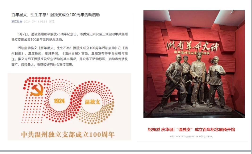 诞生于大革命洪流之中的“温独支”,以开放、创新、合作、务实和顽强的斗争精神,在思想上,开马克思主义传播之首,在实践中,开党领导群团工作之先,探索“党指挥枪”的建军模式,在瓯越百年红色历史上留下永恒的丰碑和沉甸甸的精神遗产。