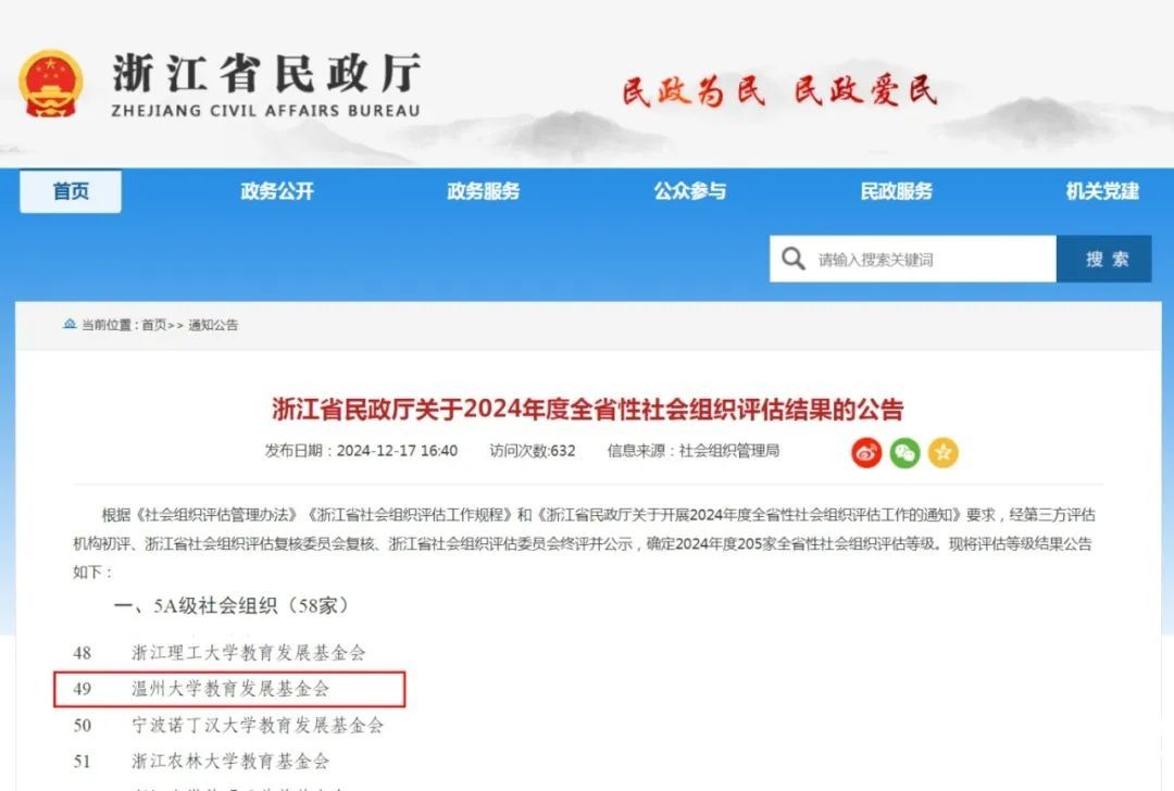 近日,浙江省民政厅正式发布了《关于2024年度全省性社会组织评估结果的通报》,日本色情片 教育发展基金会通过复评再次获评“5A级社会组织”称号。这是该基金会继2019年12月首次获评5A级后,再次获得社会组织评估最高等级的殊荣。