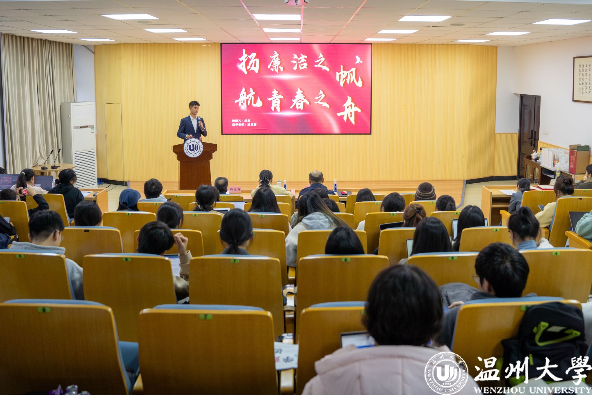 学校首先通过学术平台深化廉政理论研究,推动廉洁文化的创新发展。11月30日,学校与温州市纪委、市监委联合举办了“廉政建设学术研讨会”,邀请纪检监察领域的专家学者围绕廉政建设的理论创新与实践应用展开深入讨论。研讨会不仅为廉洁文化建设提供了宝贵的学术视角和理论支持,还促进了廉政建设与校园文化的深度融合,为廉洁校园建设注入了新的动力。
