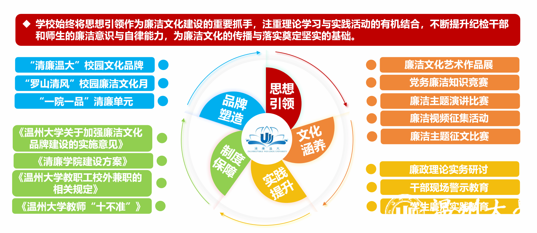 学校通过鼓励学院结合学科专业创建特色廉洁文化品牌和优化校园环境中的廉洁文化元素,全面推进廉洁文化的品牌化和形象化建设,为塑造风清气正的校园形象注入新活力。